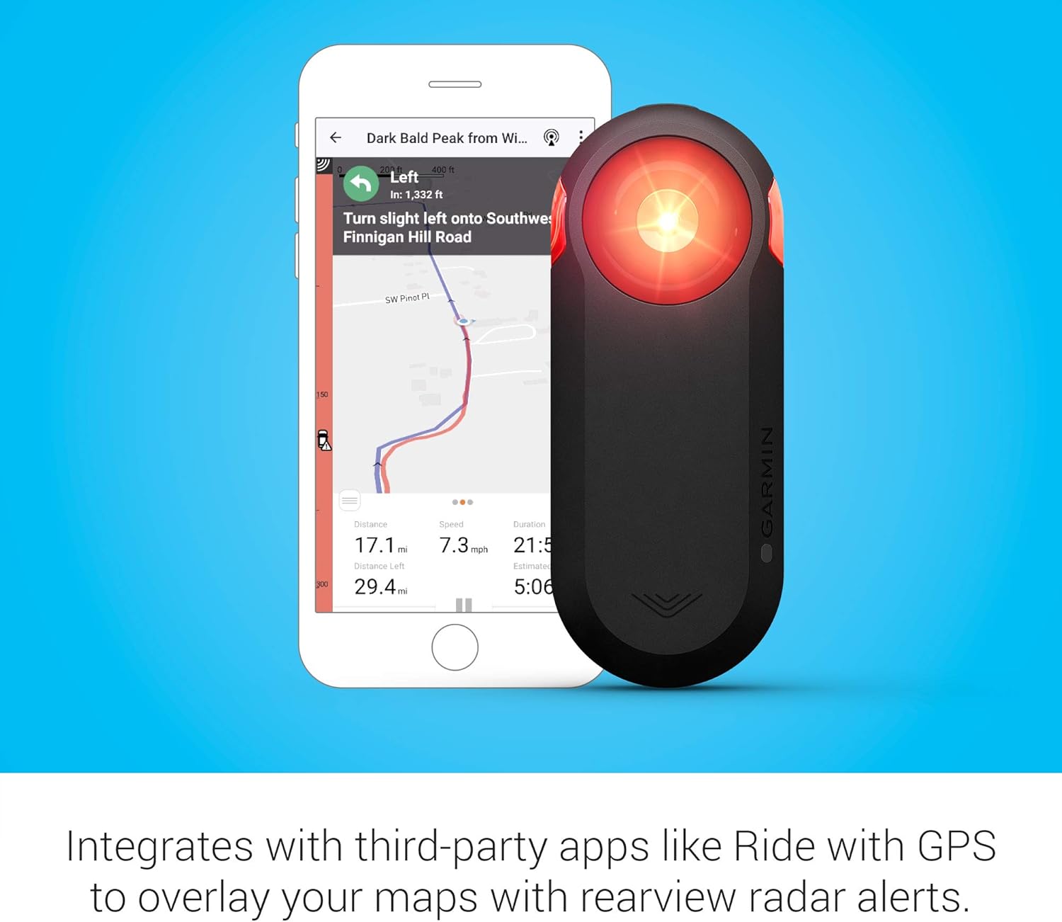 - When used with a compatible smartphone, Varia radar integrates with third-party apps such as Ride with GPS to overlay your maps with rearview radar alerts