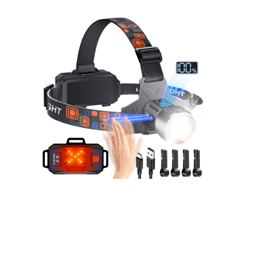 - Lighting Modes with Motion Sensor & Red Light : Adapt your lighting to any situation with multiple modes including sensor activation, high beam, low beam, strobe light. The motion sensor headlamp provides hands-free operation, while the X-shaped red safety warning light 7 alert nearby cyclists cars.Perfect as an emergency headlight for runners and hunters