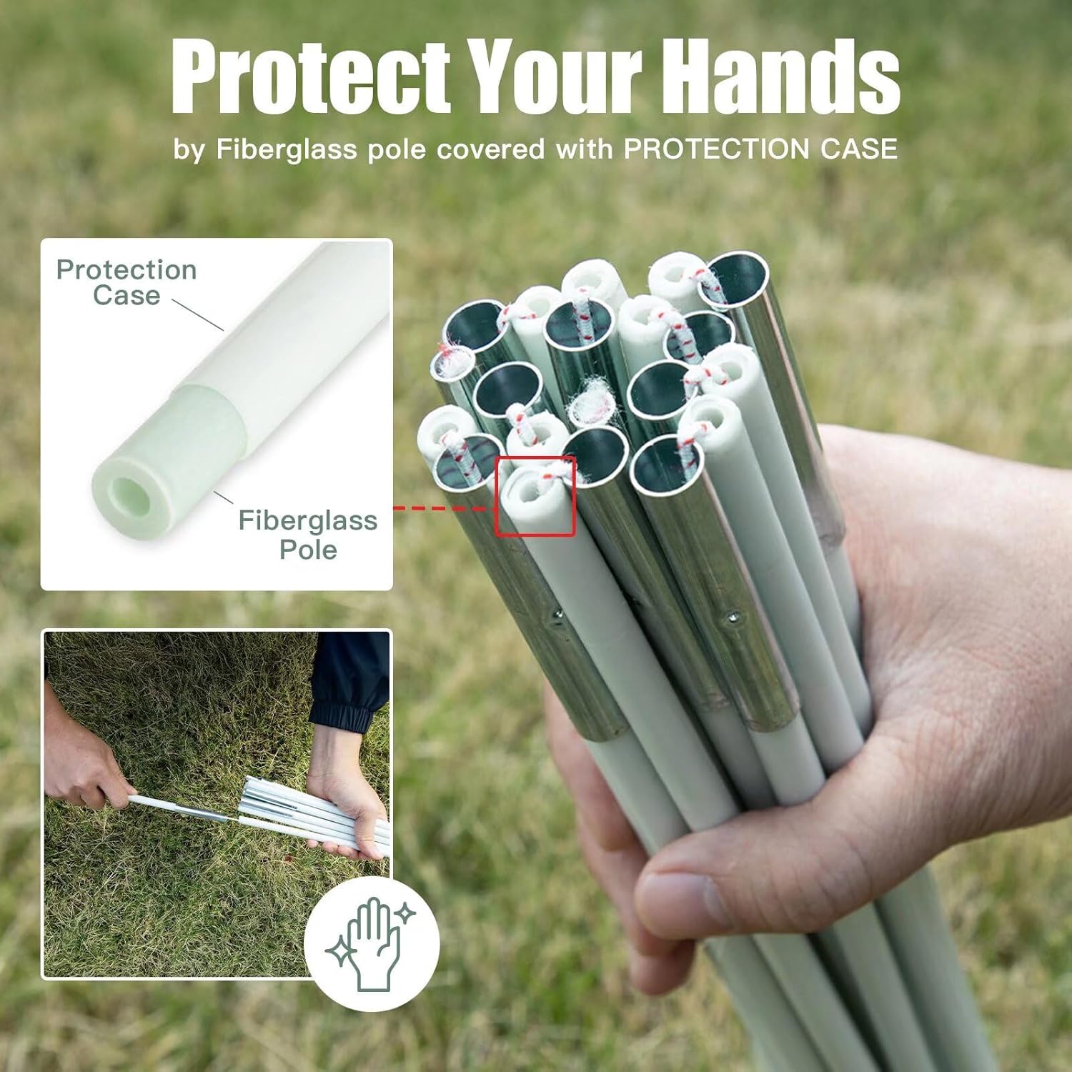 • 【Protect Your Hands】 Night Cat backpacking tent (ZP-10) uses the upgraded fiberglass pole that is fully covered with PROTECTION CASE. Comparing the traditional fiberglass pole under single layer only, the double layer design can protect your hands when assembling to avoid the tiny scrap inserting your hands